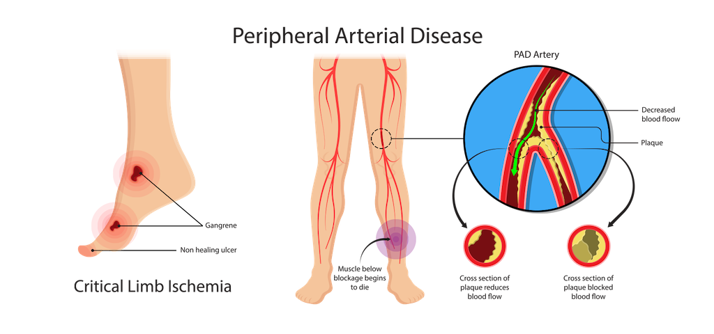 In severe cases, PAD can lead to critical limb ischemia, with persistent pain and risk of tissue death.